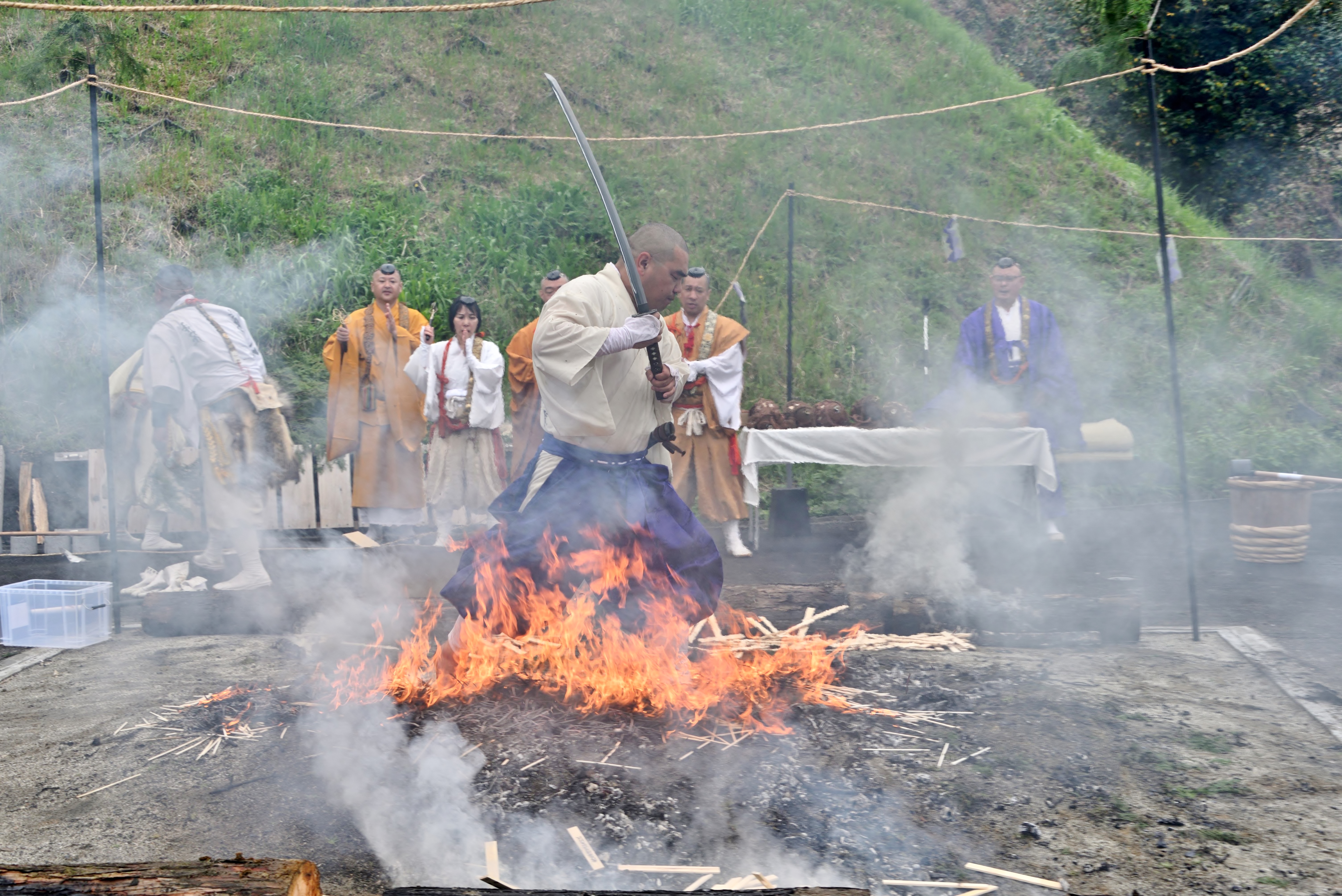 護摩終了後、住職の『湯加持』『火生三昧』(火渡りの行)を行い、その後参拝者様の火渡りの行のお時間がございます。