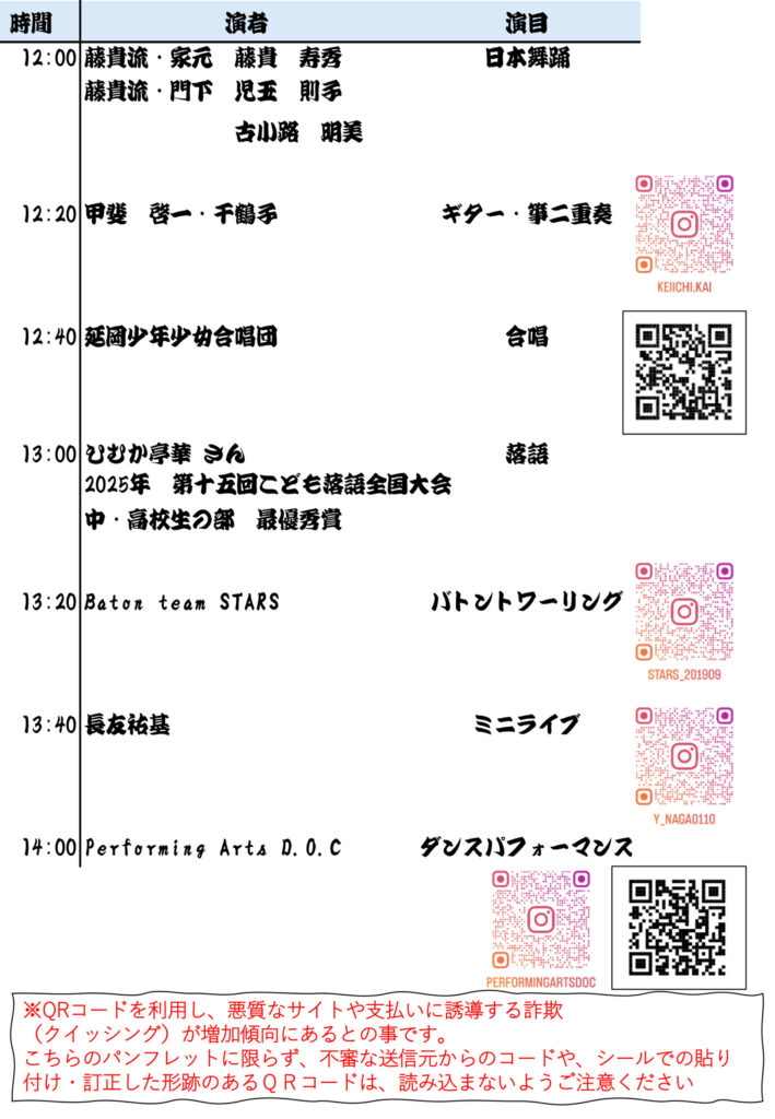 ※演目、時間は行事進行により、多少前後する可能性がございます。お参りの際は時間に余裕をもってお参りくださいますよう、予めご了承ください。