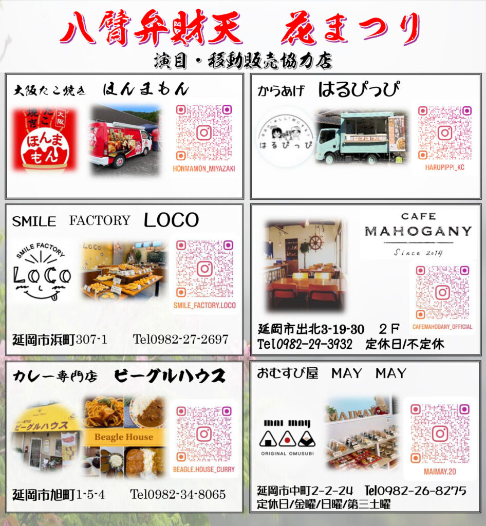 また、各店舗様のご協力のもと、移動販売も数店出店していただく予定もしておりますので、軽食をとって頂きながらの演目拝観も可能でございます。